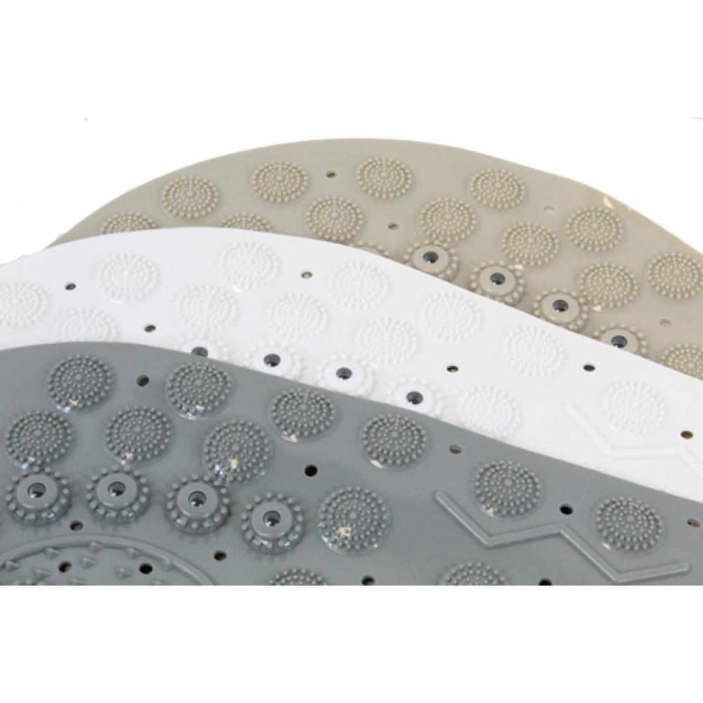 Die graue Farbgebung verleiht Ihrer Badezimmerausstattung einen modernen und eleganten Touch. Die runde Form der Matte passt perfekt in die meisten handelsüblichen Badewannen und bietet Ihnen eine bequeme und weiche Oberfläche, damit Sie sich rundum wohlfühlen können.