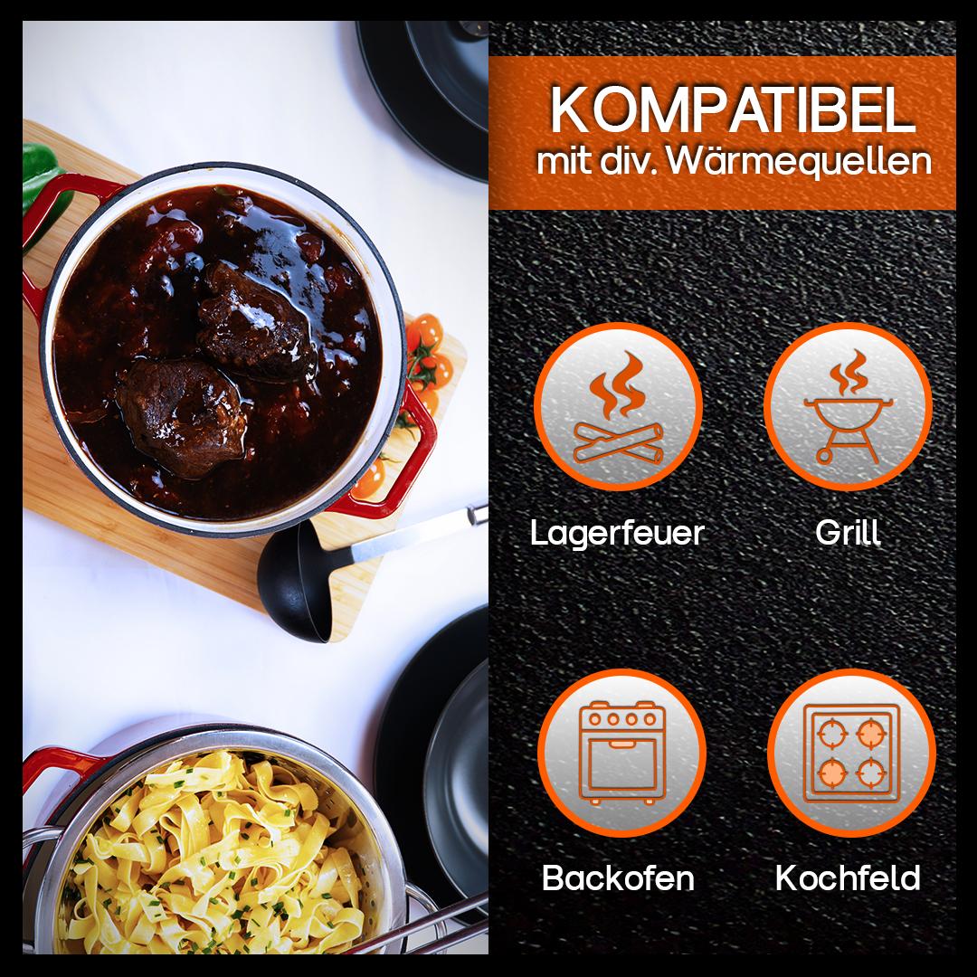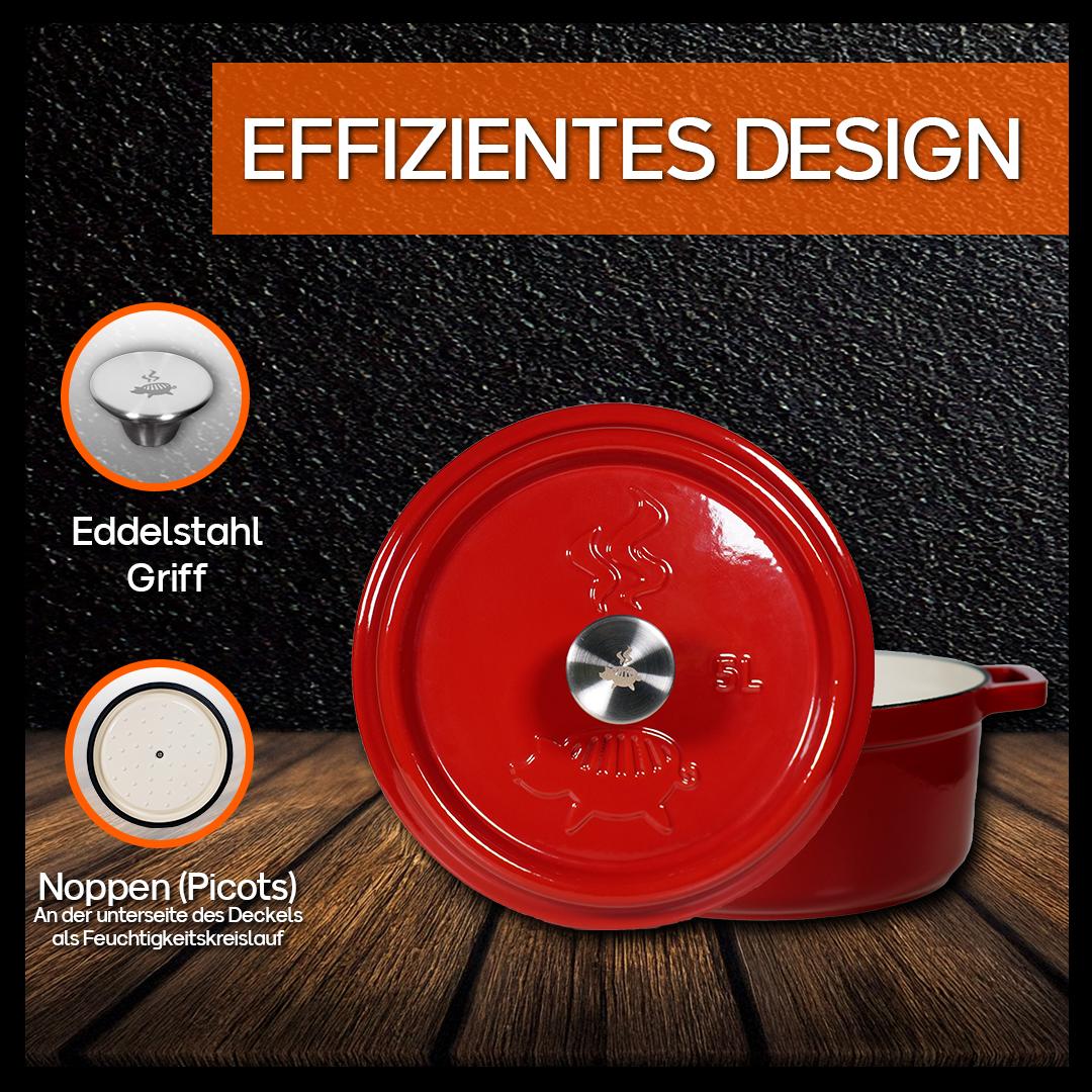 - Gusseisener Topf mit Deckel (Edelstahl Deckelknopf) zum Schmoren, Backen, Braten und Kochen